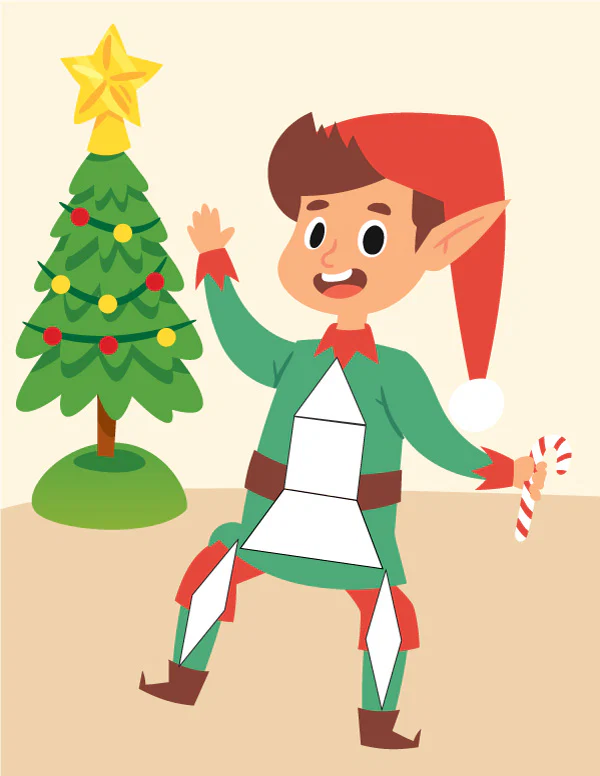 - Tangram puzzles include: Santa, Mrs. Claus, penguin, elf, Rudolph, and snowman