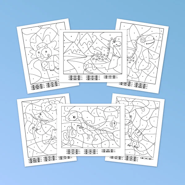 These dinosaur color by number printables are a fun and educational art activity for young kids.