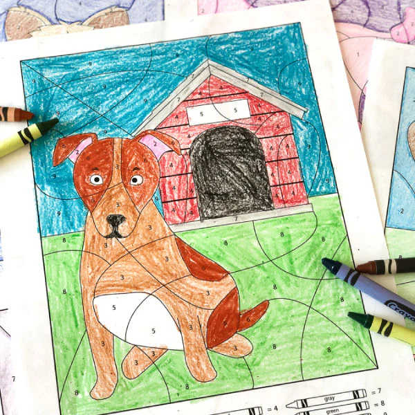 These dog color by number printables are a mess-free boredom buster kids will love.