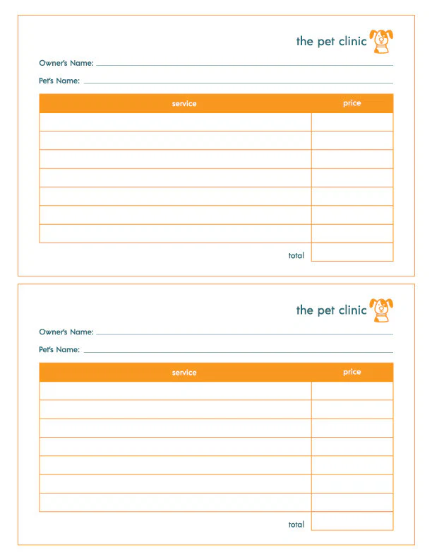 - 1 page of services price list